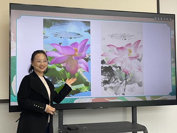 侯碧艳老师直指非艺术专业国画教学痛点,学生无美术基础、对笔墨技法理解难、易生畏难情绪,并提出借助AI 破解困境的思路。她展示了 AI 赋能教学实践, 通过 AI 将风景照片转换为国画风格激发学生兴趣,对比 AI 作品与经典名作,引导学生理解艺术创作的主观能动性与情感表达。教师还分组体验国画教学类 AI 工具,感受教学革新。