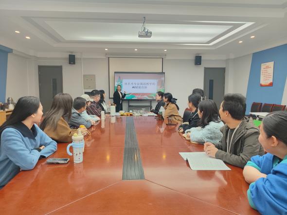 为破除非艺术专业国画教学壁垒,探索AI 与传统艺术教育融合路径,10 月 23 日中午,公共艺术及空乘教研室在艺术学院 411 会议室举办专题教研活动。活动由教研室主任主持,侯碧艳老师主讲,全体教师参会。