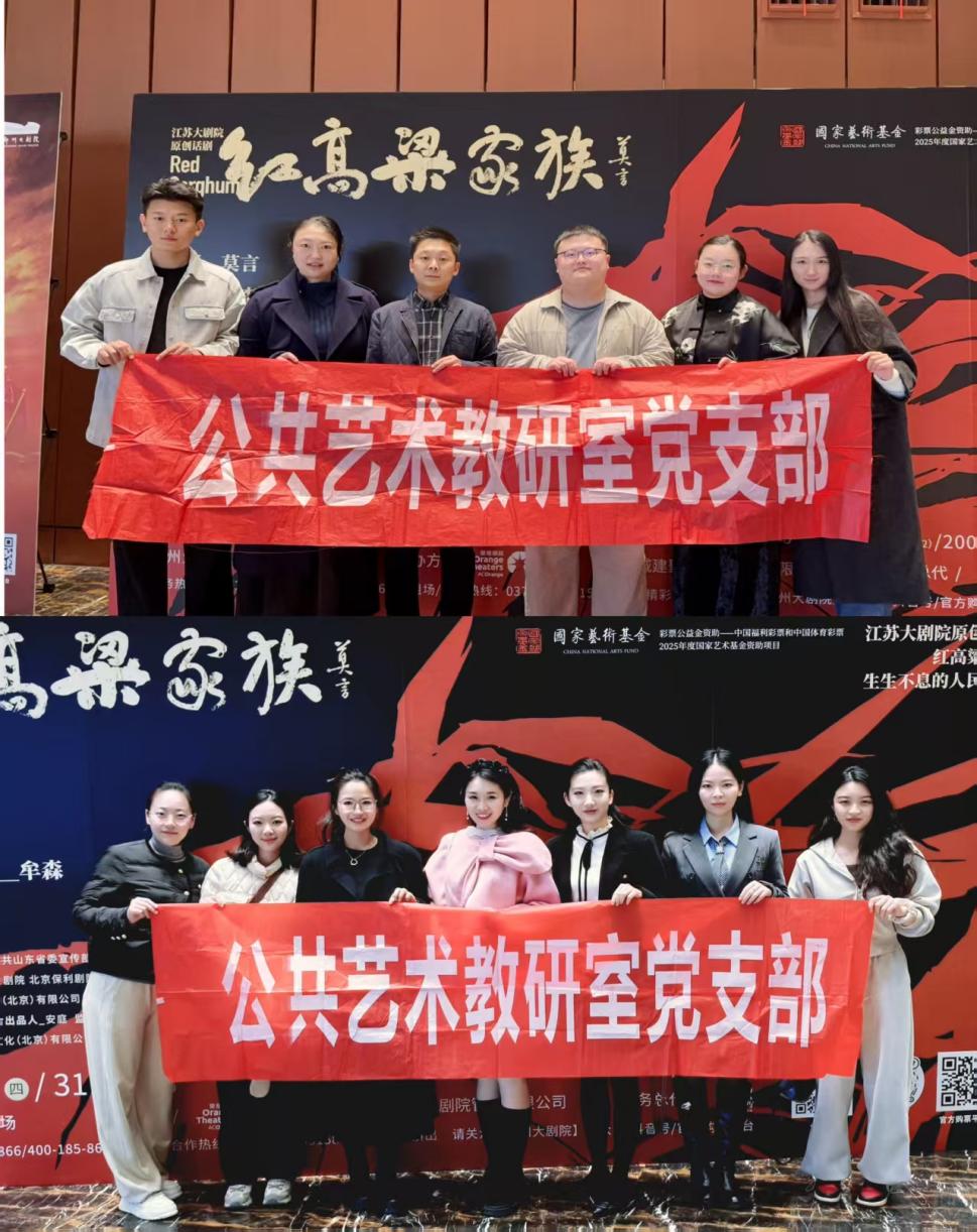 为深入推动党建与业务深度融合,以高质量文化实践强化思想引领,2025年10月31日,公共艺术教研室党支部组织全体党员赴郑州大剧院,开展观摩话剧《红高粱》主题党日活动。该剧改编自莫言同名文学经典,是党支部推进艺术教育与党性教育相结合的重要实践载体。