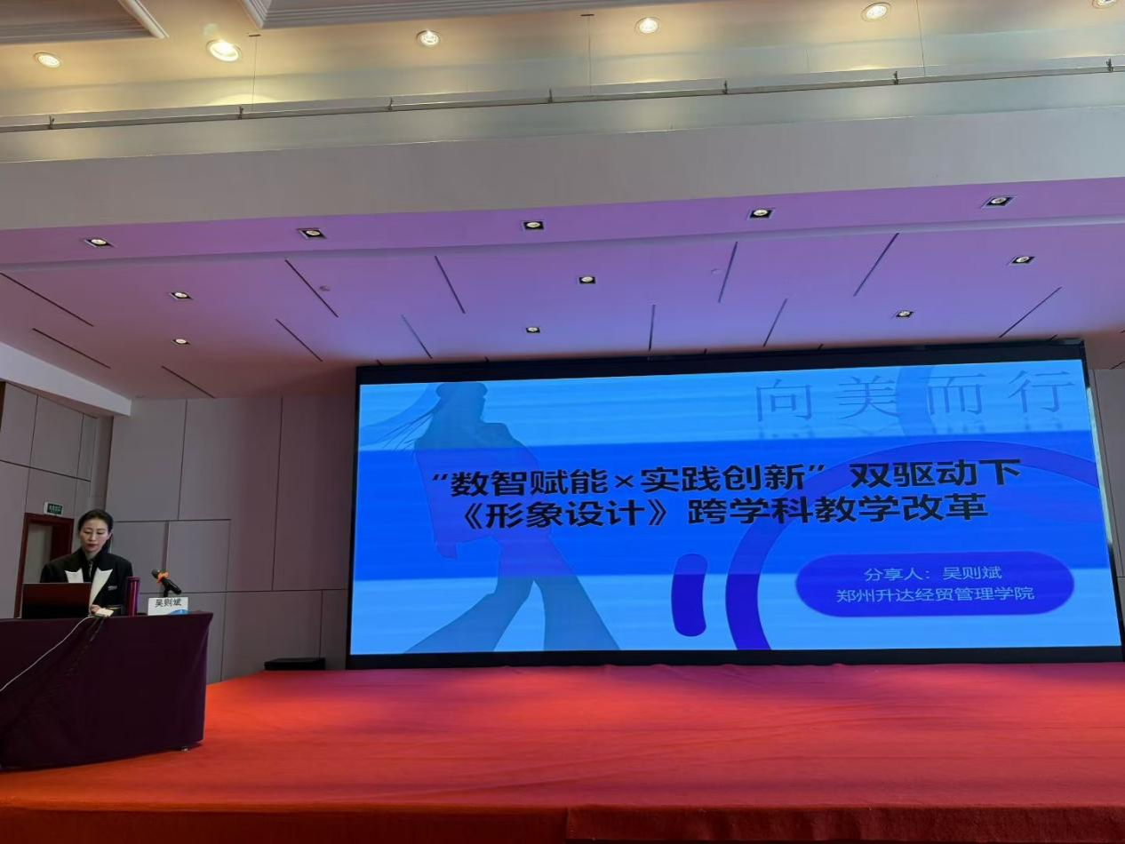 本次培训很荣幸邀请我校艺术学院公共艺术教研室主任吴则斌教授进行案例分享,以“‘数智赋能x实践创新’双驱动下《形象设计》跨学科教学改革”为主题,分享内容既展现了课程改革的具体路径,得到现场同行的关注与认可。