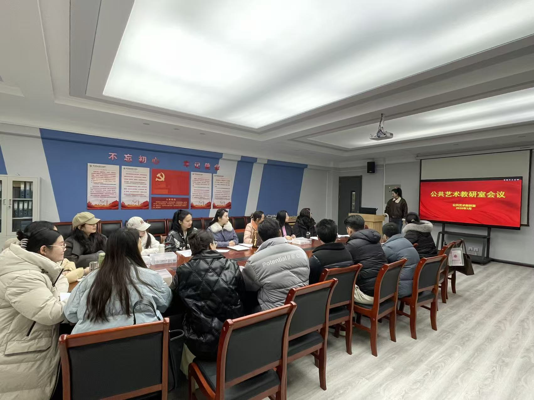 3月16日中午,公共艺术教研室、空中乘务教研室开展教研室工作联席会议,本次研讨会围绕新学期公共艺术课程建设与空乘专业教学优化两大主题展开深入交流。教研室主任首先总结了上学期教学工作的亮点与不足,强调在"美育浸润"行动背景下,公共艺术课程需进一步打破学科壁垒,探索与专业教育的融合路径。与会教师结合《艺术概论》《应急救护》等核心课程,分享了案例教学、情境模拟等创新实践,并就课程思政元素的有机融入展开热烈讨论。